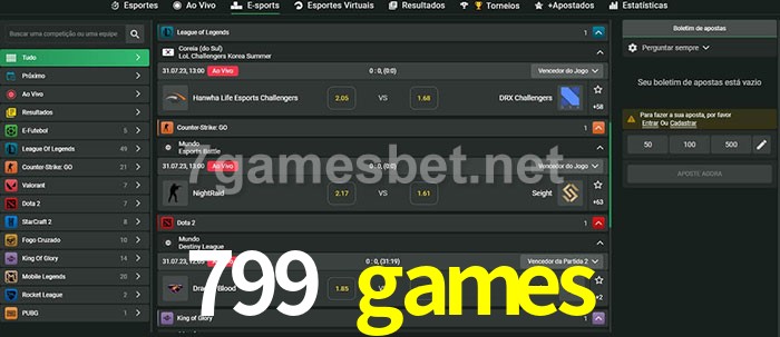 O 799 games oferece uma grande seleção de opções de apostas em e-sports com probabilidades competitivas
